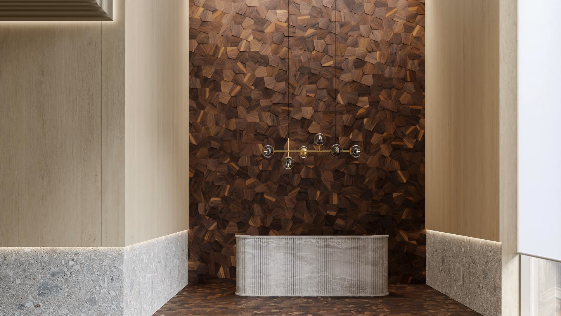 Inspired by geometric architecture and the roots of all forms. As an architect, Joe Langenauer explored how five-sided pentagrams join and scale, creating an entirely new design expressions, looking for where the interplay of depth, light, and surface come together.